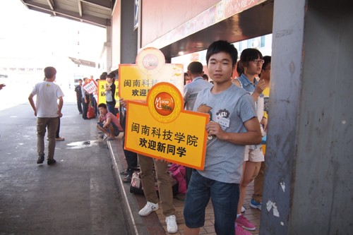 一位来自城市管理学专业的女同学跟着父亲走下长途大巴时一脸憔悴,我们的志愿者连忙招呼他们到“大本营”坐下,并递上饮用水。几分钟后,她紧绷的脸才渐渐舒展开来。“这是我们第一次出远门,还晕车,一路提心吊胆的,现在总算放心了。”女同学的话让志愿者们脸上泛起开心的笑容。