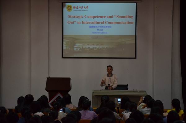 10月23日下午,“闽科讲坛”邀请福建师范大学外国语学院教授、博士生导师林大津在美林校区阶梯教室作了题为“跨文化言语交际策略”讲座。学院副院长吴勇出席本次讲座,讲座由外语系系主任何开松主持。