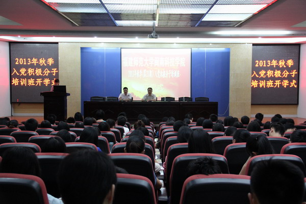 10月16日下午,中共福建师范大学雷速网页版委员会分党校2013年度秋季(第二十一期)入党积极分子培训班开学式在图书馆学术报告厅举行。院党委常务副书记、分党校校长林明旭,党委副书记、分党校副校长李彬源,全体辅导员以及培训班全体学员出席了开学式。开学式由李彬源主持。