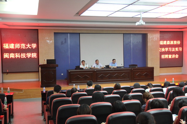 5月28日,森源家具集团交换学习及实习招聘宣讲会在图书馆学术报告厅举行。宣讲会上,森源家具集团方面负责同志就交换学习内容、程序和目的做了详细的介绍,现场还就学生实习方面问题逐一进行回答。