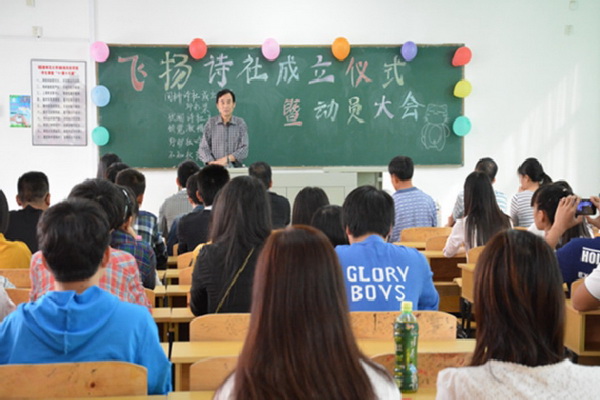 为激发学生对诗词的兴趣,营造浓厚的诗词文化氛围。近日,院学生社团联合会举行飞扬诗社成立仪式暨动员大会。院长邱永渠教授到场指导,传授写作技巧。