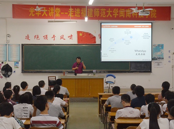 此次讲座为“光华大讲堂——走进福建师范大学雷速网页版”活动之一,讲座由中国光华科技基金会主办,我院教务部、科研部、经济管理系承办。讲座给大学生走向创业道路提供一个新的视角,鼓励学生认知社会、参与社会实践。