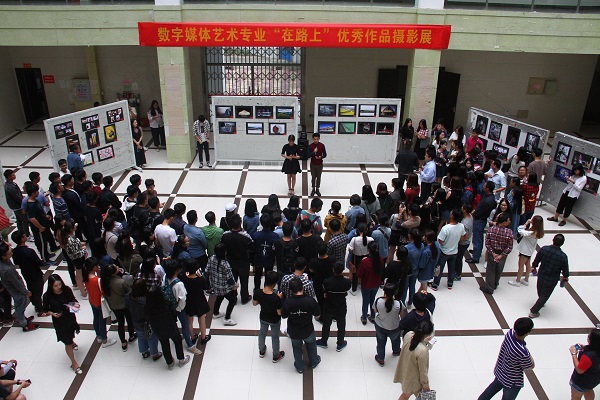 10月12日,计算机科学系数字媒体艺术专业“在路上”优秀摄影作品展在图书馆一楼大厅举办,展览吸引了众多师生前来参观。
