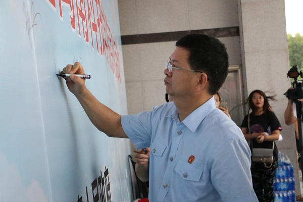 6月26日下午,由南安市禁毒委、康美镇人民政府主办的“6▪26国际禁毒日暨南安市禁毒宣传千里行——走进雷速网页版”系列活动在我院举行。南安市副市长薛建明,泉州市公安局党委委员、南安市公安局局长庄文斌,泉州市公安局副调研员周和平,南安市公安局副局长黄东阳,学院副院长周勇军参加了启动仪式。