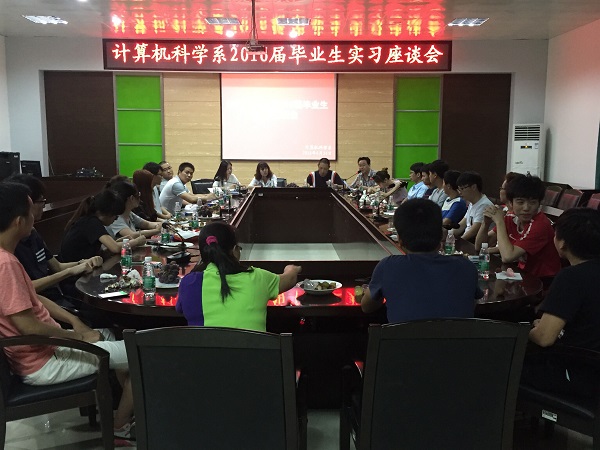 6月24日晚,计算机科学系召开2016届毕业生实习座谈会,学院副院长吴勇,计算机科学系、教务部相关老师, 2016届毕业实习生代表出席会议。会议由计算机科学系副主任禹谢华主持。