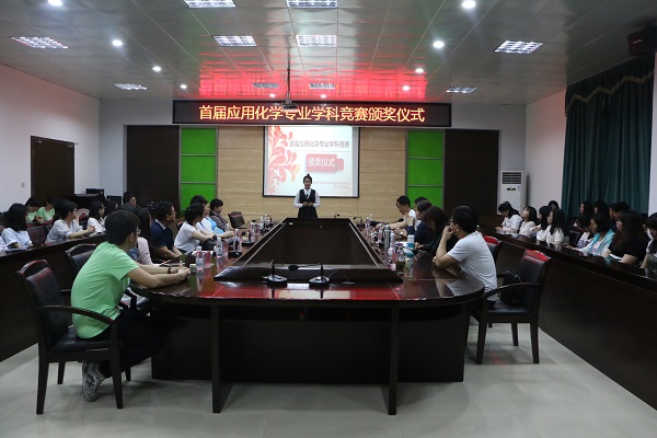 仪式上,分别为“第二届化学实验技能大赛”一等奖团队2014级应用化学专业方晴雯、张欣、黄沁莹、吴海庭,“首届应用化学学科专业竞赛”一等奖团队BOTH队2014级应用化学专业高霞、李小鸿颁奖,对获奖同学表示祝贺。吴勇副院长指出,生命科学与化学系两个专业技能竞赛积极推动设计性、综合性、创新性实验教学的开展,有效提升学生专业实践的积极性及科研兴趣,希望能持续深入地考察学生的基础知识、专业技能,培养学生实践能力、创新能力,助力学生成长成才。