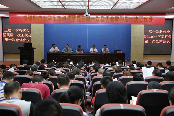 第一次全体会议由大会执行主席周勇军副院长主持。邱永渠院长作了题为《深化综合改革,突出办学特色,坚持以质量提升为核心的内涵式发展道路》的工作报告,报告回顾了二届一次教代会暨三届一次工代会以来学院的主要工作,提出了今后的工作思路。报告指出,二届一次教代会暨三届一次工代会以来,学院事业发展呈现速度加快、结构改善、活力和后劲增强的良好态势。一是专业学科建设初见成效,办学效应逐步凸显;二是教育教学质量逐步提高,学生就业率创新高;三是科研工作取得长足进展,研究中心相继成立;四是逐步推进二级管理体制,运行机制得到优化;五是校企合作全面深入开展,多级媒体相继报道;六是教育教学改革初显成效,学生综合能力提升;七是师资建设水平明显提高,师资结构不断优化;八是办学条件逐渐得到改善,软硬件配套逐步完善;九是积极开展对外交流活动,综合实力不断提升;十是全面加强党的建设工作,推进和谐校园建设。今后,学院将积极顺应高等教育新形势,深入学习新的民办教育促进法,进一步加强学科专业建设、师资队伍建设、科学研究工作、校园文化建设、文明校园建设,科学制定校园规划,强化对外交流与合作,坚持提高质量、突出特色,坚持提升内涵、科学发展,坚持传承创新、勇于变革,将学院建设成为一所立足闽南,面向海西,服务区域经济社会发展,具有侨乡特色的应用技术型民办学院。
