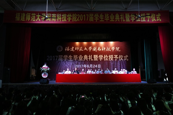 典礼于6月24日上午在康美校区学生活动中心隆重举行。南安市人民政府副市长王昭昭,南安市康美镇党委副书记郭东升,院领导邱永渠、林明旭、周勇军、吴勇、俞建群,部分校企合作代表,学院各系部、中心负责人,毕业班辅导员,教师代表、部分毕业生家长、校友代表,及全体2017届毕业生近3000人参加了仪式。典礼仪式由院党委常务副书记林明旭主持。