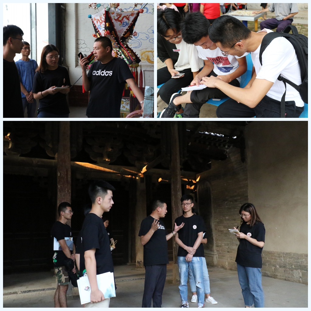 为全面贯彻落实习近平新时代中国特色社会主义思想和党的十九大精神,引领青年学生投身精准扶贫,用实际行动助力乡村振兴,团中央学校部联合中共长治市委组织开展“筑梦新时代·奋斗新征程”百所高校上党行暑期实践活动,我院“Firefly”实践团队成功入选,承担实践课题“四景车等非物质文化遗产的保护与推广”,团队由院团委办公室主任黄俊敏担任带队老师、2015级广告学专业蔡佳旻同学作为队长,师生共计10人于7月18日至31日前往山西省长治市平顺县北社乡开展了为期半个月四景车等非物质文化遗产专项调研活动。