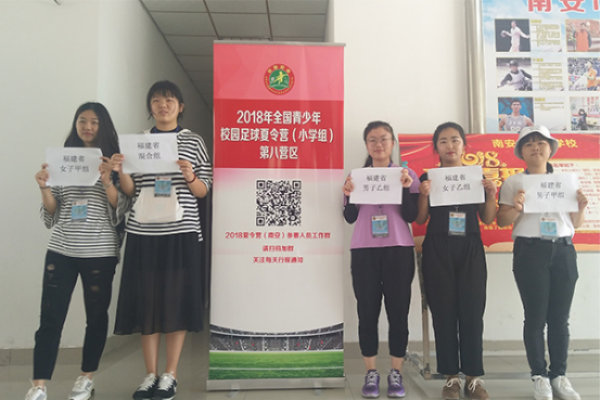 7月20日至26日,2018年全国青少年校园足球夏令营(小学组)第八营区活动在南安举行,来自福建、江西、广东、海南四个省的领队、教练员、运动员近500人参加活动。我院选派31名大学生青年志愿者全程参与夏令营服务保障工作。