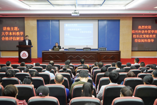 11月16日,我院邀请福州外语外贸学院校长沈斐敏教授莅临我院,作《合格评估方案与合格评估指标体系》专题讲座,院领导张杰、俞建群、周勇军、吴勇及全院教职工到场聆听。讲座由学院党委副书记、副院长(主持工作)张杰主持。