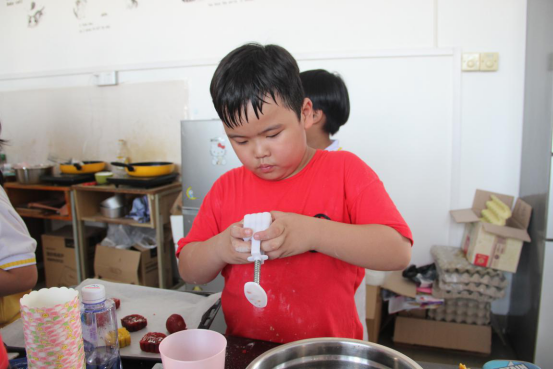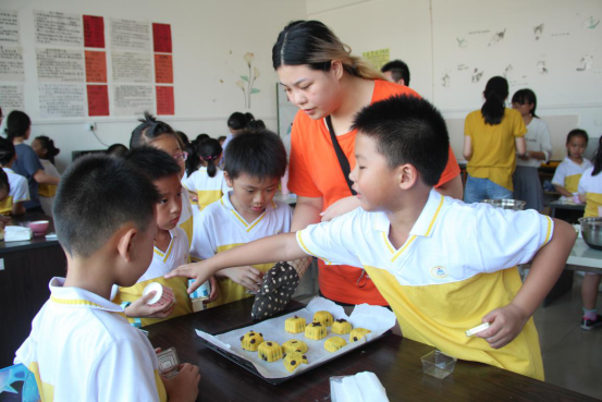豆沙的馅,红色的皮……一个个精美的月饼,在小记者们的小手中诞生了。“第一次自己亲手做的月饼,我要送给最辛苦的妈妈。”来自南安市实验小学二年级三班的陈同学说,很荣幸能来到大学过不一样的中秋节,大学好大,闽科很美,将来我也要上大学。在美林校区的启慧楼食尚协会美林实验室里,欢声笑语,小记者们体验亲手制作月饼的乐趣。