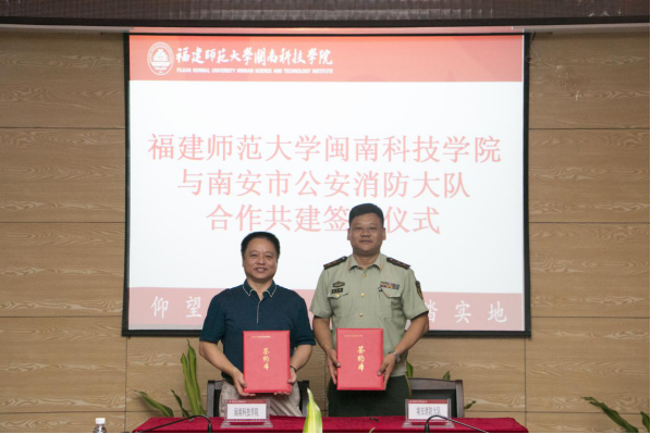 党委常务副书记林明旭、南安市公安消防大队政治教导员甘代辉分别代表双方在协议书上签字,南安市公安消防大队向我院颁授警校共建单位牌匾。