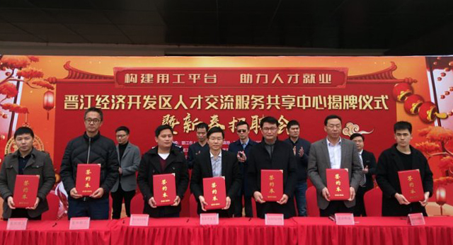2月17日上午,2019年晋江经济开发区“春风行动”新春招聘会暨人才交流服务共享中心揭牌仪式启动。我院党委副书记俞建群应邀参加活动,并代表学院与晋江经济开发区人才交流服务共享中心签订“高校人才战略合作”协议。