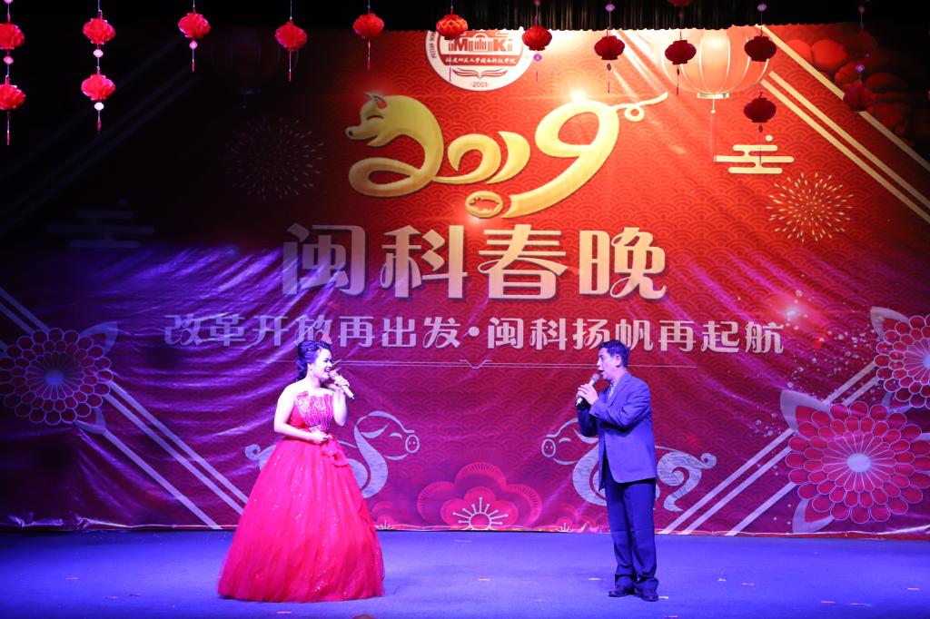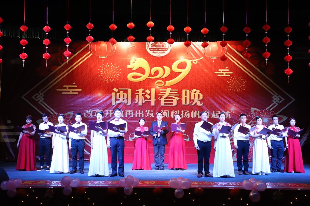 2019年“闽科春晚”以“改革开放再出发,闽科扬帆再启航”为主题,分为“春分化雨•孕新生”“春潮万象•扬新波”“春华秋实•启新程”三个篇章,用文艺表演的形式,展现全体教职工朝气蓬勃、团结向上的精神面貌,以崭新的姿态迎接新的一年。