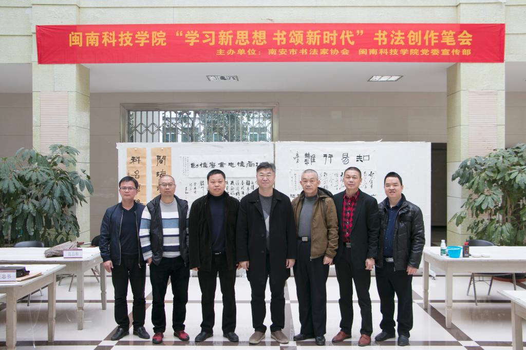 12月29日,学院党委宣传部联合南安市书法协会举办“学习新思想 书颂新时代”书法创作笔会,邀请李仁杰、潘高鹏、王忠书、王志安、范百和、苏学瑜6位书法家现场创作。学院党委副书记、副院长(主持工作)张杰前往现场观摩。