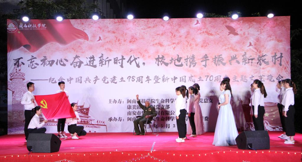 5月30日晚,生命科学与化学学院党总支、南安市康美镇集星村党支部、南安市集美石材有限公司党支部联合主办“不忘初心奋进新时代,校地携手振兴新农村”主题文艺汇演。300多名闽科师生及康美镇群众观看演出。