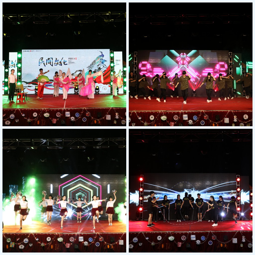 晚会结合啦啦操、歌舞、说唱、话剧、相声等多种形式,表演了12个精彩纷呈的节目。其中,歌舞《棠梨煎雪》、《缅桂花开多多香》和《戏曲情韵》婉约优美,说唱《Rap show》、街舞《舞动青春》热情活力;话剧《艺术在余晖》、相声《抬杠》生动有趣……现代与古典并融,风格迥异,整场晚会掌声不断,高潮迭起,展现社团文化魅力和青年学生青春风采。期间还为“优秀学生社团”和“优秀十佳社团”颁奖。