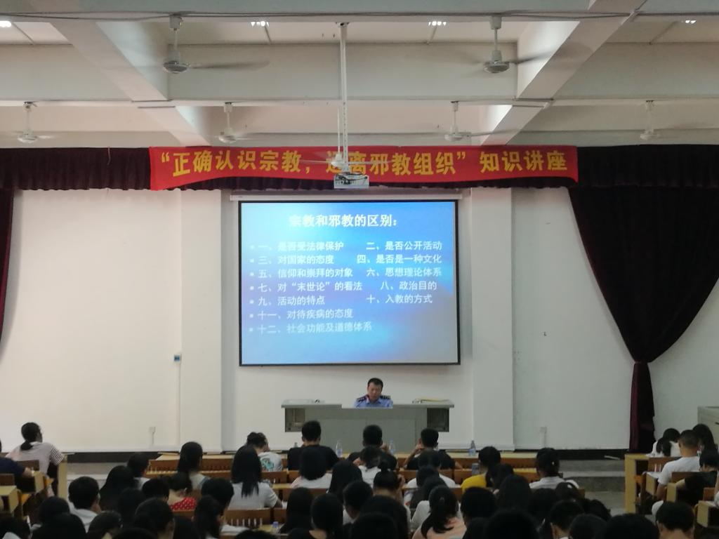为深入推进平安校园建设,进一步提高广大师生认识邪教、反对邪教、抵制邪教的能力,4月24日下午,我院联合南安市公安局在美林校区开展“正确认识宗教,远离邪教组织”专题讲座暨反邪教宣传教育活动。美林校区师生近200余人参加活动。