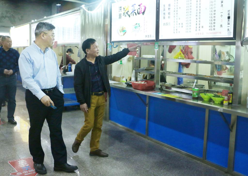 4月11日中午,张杰来到学生第一食堂,了解食堂菜色、菜品、卫生、经营等情况,并与学生一起排队,使用餐卡点餐,与学生共同就餐。进餐过程中,张杰与同桌的同学们亲切交流,认真听取了同学们的意见和建议。针对同学们反馈的食堂饭菜质量价格、管理服务、就餐环境等方面的问题逐一做了回复,并要求相关部门及时进行研究整改。