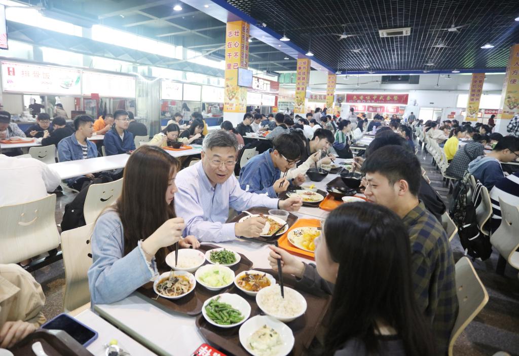 “院长,您来陪我们吃饭。”“这一份酱牛肉套餐多少钱,味道合你口味吗?”“就餐环境还满意吗?”……在学生第一食堂里,学生与学院党委副书记、副院长(主持工作)张杰近距离面对面地交流着。