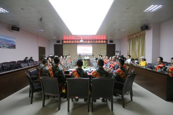 9月8日下午,我校举行2019年度新兵入伍座谈会。学校副校长周勇军,人民武装部副部长苏清山、郑社彬,部分辅导员及退伍老兵代表参加会议,与我校今年应征入伍的24名新兵同志共话军旅。