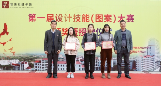 与会领导为首届设计技能(图案)大赛金奖获得者颁奖