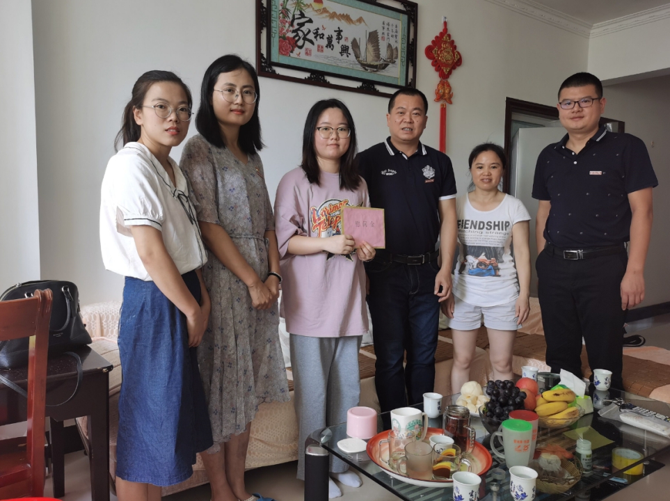 7月6日,林树生助理一行来到了南平市邵武市,走访慰问2018级信息管理与信息系统专业熊同学。熊同学家庭因父亲生病去世致贫,母亲在服装厂做工,一人拉扯她们姐妹俩,疫情期间,母亲服装厂效益不好,工资不能按时发放,熊同学不但利用专业特长兼职贴补家用,还主动帮母亲一起做家政工作。