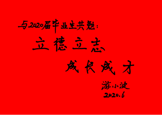 校长游小波为2020届毕业生寄语题词