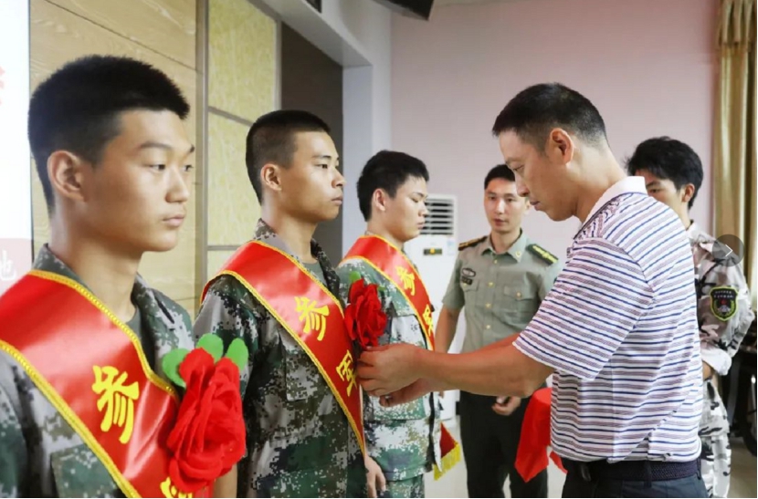 退伍老兵代表彭瑞、林海滨、谢发壤等先后分享服役期间的心路历程,对即将踏上新征程的新兵战友们送上诚挚祝福;新兵家长代表苏招愿表示,定会全力支持孩子履行兵役义务,全力支持国防事业,为祖国、为家乡、为学校争光。