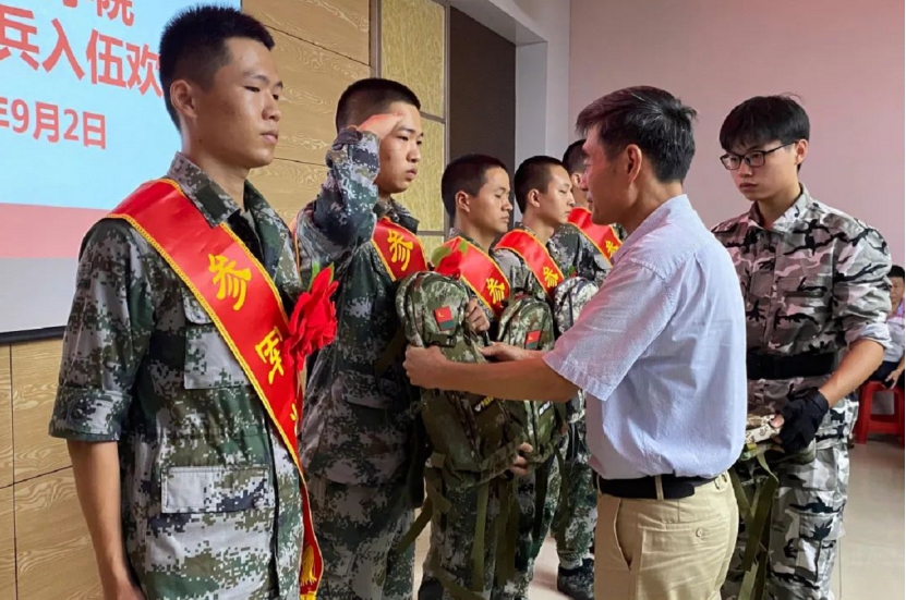 9月2日下午,我校举行2020年度新兵入伍欢送会。校领导游小波、周勇军、吴勇、林树生,学校人民武装部、教务处、学工处相关老师,部分退伍老兵及今年入伍的20名入伍新兵、新兵家长代表等参加会议。
