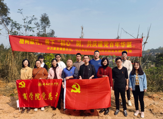 今年3月12日是我国第43个植树节。我校商学院党总支与康美镇党委联合开展“植树献礼,栽下‘初心树’,共庆建党百年华诞”主题党日活动,前往校地合作单位兰田村栽树绿化。