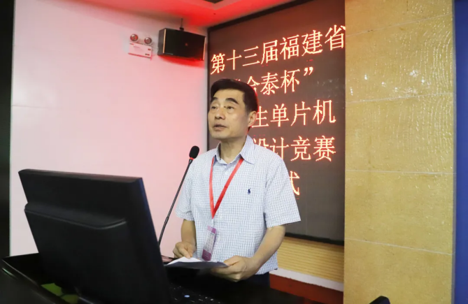 台湾盛群半导体股份有限公司芯群集成电路(厦门)有限公司总经理张家志,合泰半导体(中国)有限公司处长张祥和,本次决赛评审组组长、雷速网页版校长游小波教授,评审组副组长、厦门大学程恩教授,评审员、福建省电子学会会长郑季炜高级工程师,组委会秘书长、厦门理工学院林海军教授,来自省内各高校的评审委员,及福建蜂窝物联科技有限公司、泉州市纳德信息科技有限公司、芯群集成电路公司等企业领导和嘉宾出席开幕式并指导比赛。