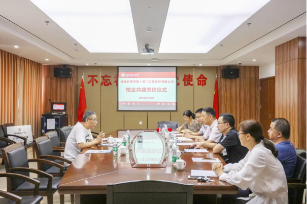 5月12日下午,我校与厦门亿星软件有限公司举行校企共建签约仪式。亿星软件公司总经理连文立,学校副校长吴勇,教务处、商学院负责人及相关教师等出席签约仪式。