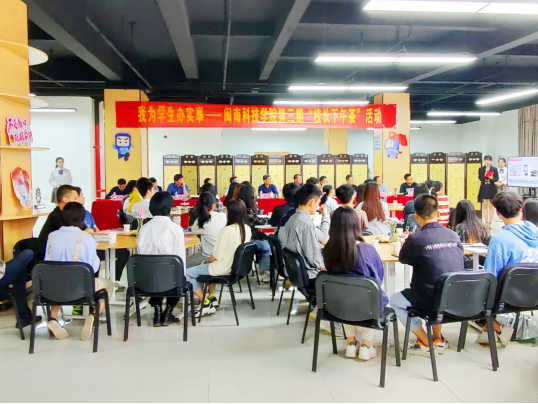 4月28日下午,第三期“校长下午茶”活动在学校图书馆四楼研讨室举行。校领导游小波、林树生,相关职能部门负责人及来自各二级学院的近40名学生代表参加活动。