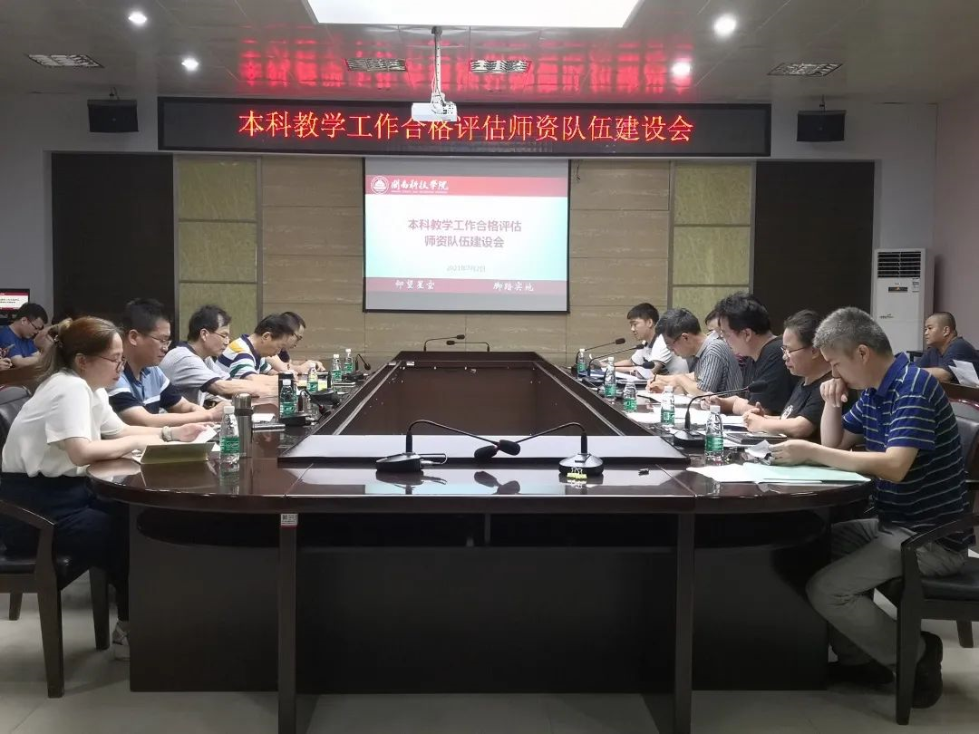 7月2日下午,我校在图书馆二楼会议室召开本科教学工作合格评估师资队伍建设推进会。校领导游小波、邱永渠出席会议,各相关职能部门和各二级学院负责人、各教研室主任、专业负责人参加会议。