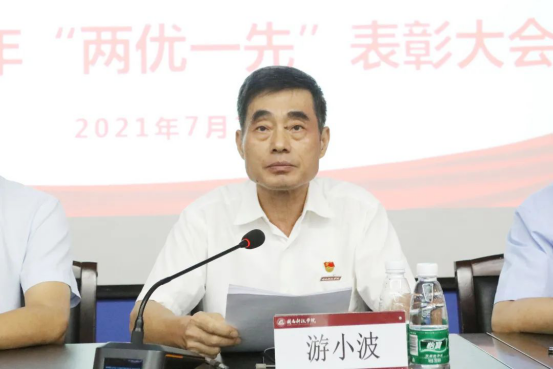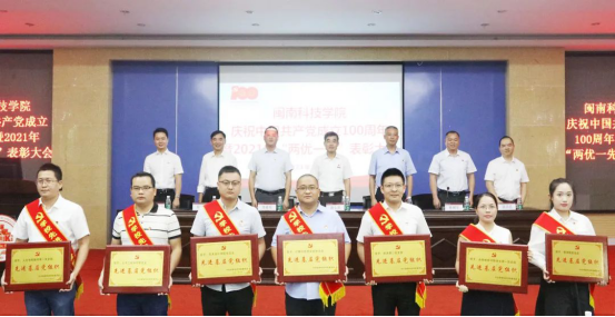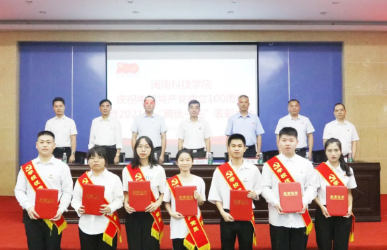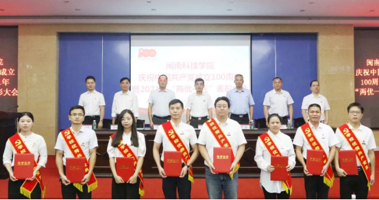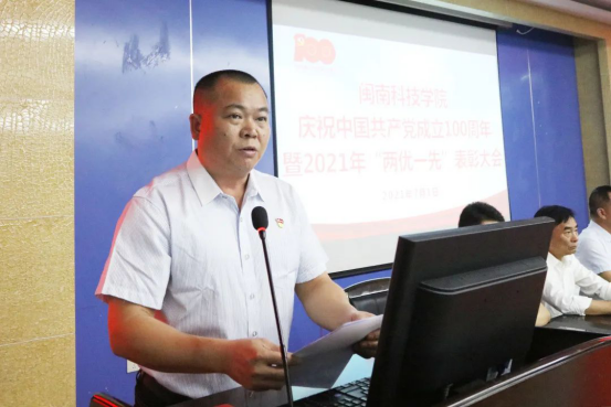 7月1日上午,我校在图书馆学术报告厅隆重召开庆祝中国共产党成立100周年大会暨“两优一先”表彰大会。校领导游小波、李旭、周勇军、林树生、邱永渠,全体党委委员,“两优一先”表彰对象、各二级学院党政负责人、各职能部门负责人和党员师生代表参加大会。大会由校党委副书记林树生主持。