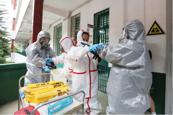 “老师,有同学不小心打翻了有机废液喷到眼睛了!”“立即带该同学去洗眼器处对眼部进行冲淋处理。”“全体同学立即停止实验,靠窗的同学将窗户全部打开,其他同学从前后门有序撤出实验室。”随着一声“命令”,实验室内全体同学迅速有序离开实验室,现场立即关闭前后门并拉起警戒线。