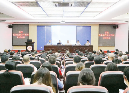 5月27日下午,我校举办传染病预防与控制知识讲座,邀请南安市疾病预防控制中心副主任黄清远,南安市疾病预防控制中心应急与传染病科科长林智勇作《学校传染病的预防和控制》专题讲座。校领导游小波、李旭、周勇军,校党政办、后勤管理处、医务所等相关职能部门负责人,各二级学院师生代表,食堂、物业负责人及代表300余人到场聆听。讲座由常务副校长周勇军主持。