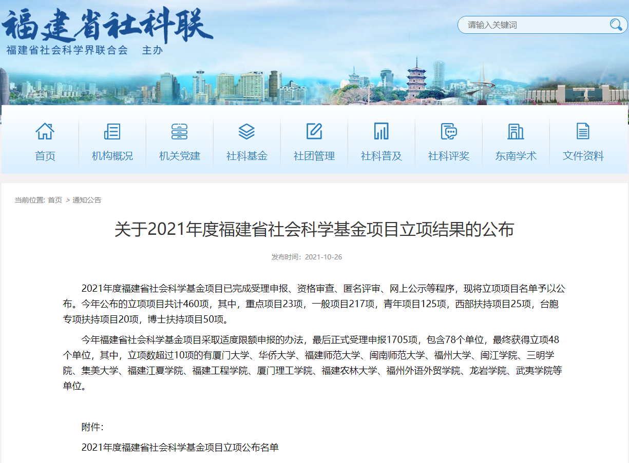 近日,2021年度福建省社会科学规划项目立项结果公布,我校商学院教授施宏彬博士主持申报的《非决定论视角下传统企业转型平台商业的价值创新路径理论研究》获一般项目立项。