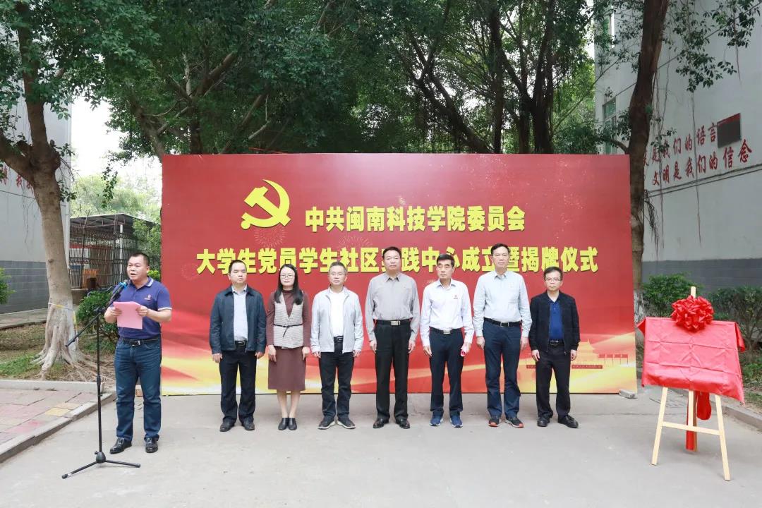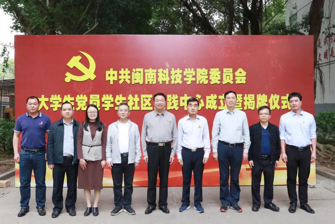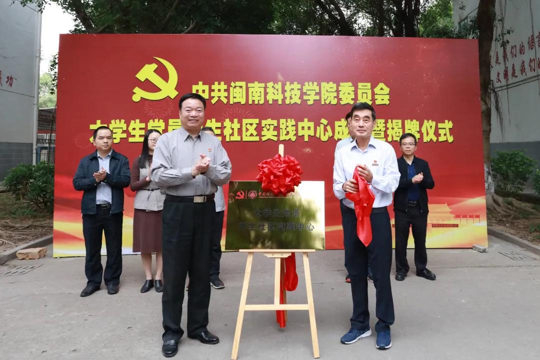 揭牌仪式上,省教育系统党史学习教育巡回指导五组组长林其天、校长游小波共同为“大学生党员学生社区实践中心”揭牌。
