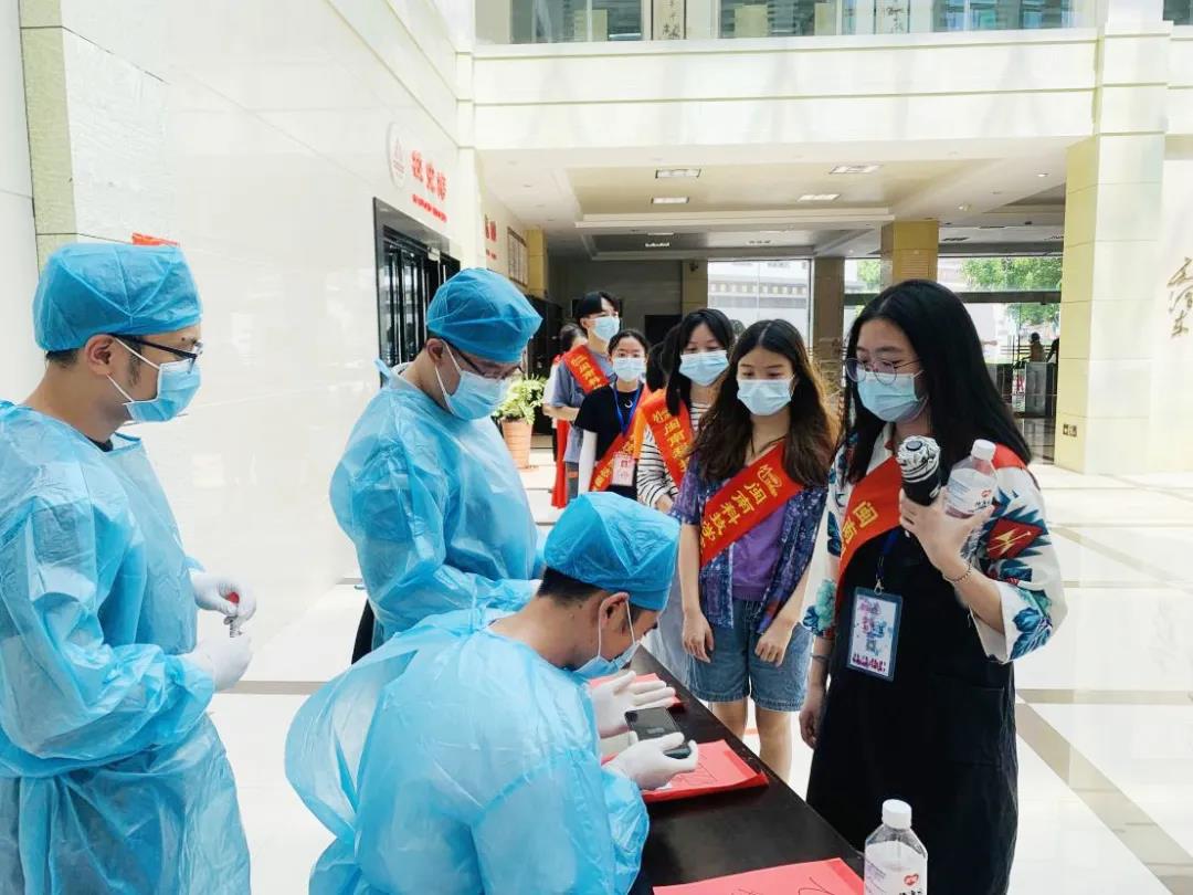 为切实履行防控责任和学校疫情防控工作部署会要求,确保我校第二轮全员核酸检测工作的顺利开展,商学院师生党员志愿者们组成一道“红色防护墙”,冲锋在前,“疫”无反顾。他们在出入口引导等候检测的师生按照一米线排队,协助现场医务人员做好师生的体温检测和信息登记工作,维持好核酸检测现场的秩序,充分展现了党员无私奉献、勇于担当的精神风貌。