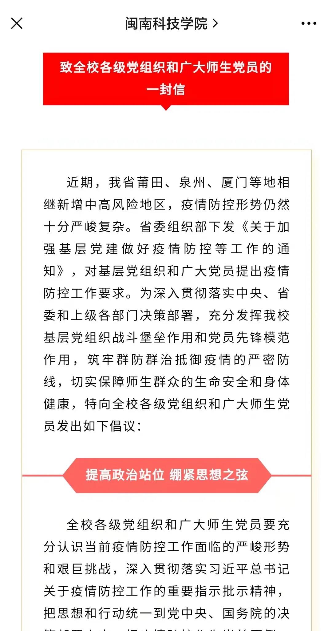 校党委发布《致全校各级党组织和广大师生党员的一封信》