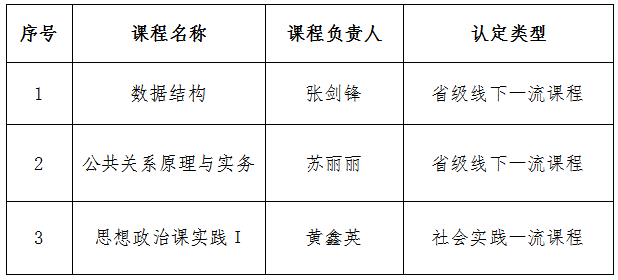 近日,福建省教育厅公布《福建省教育厅关于公布2021年省级一流本科课程名单的通知》,我校《数据结构》等3门课程获批立项,其中线下一流课程2门,社会实践一流课程1门。