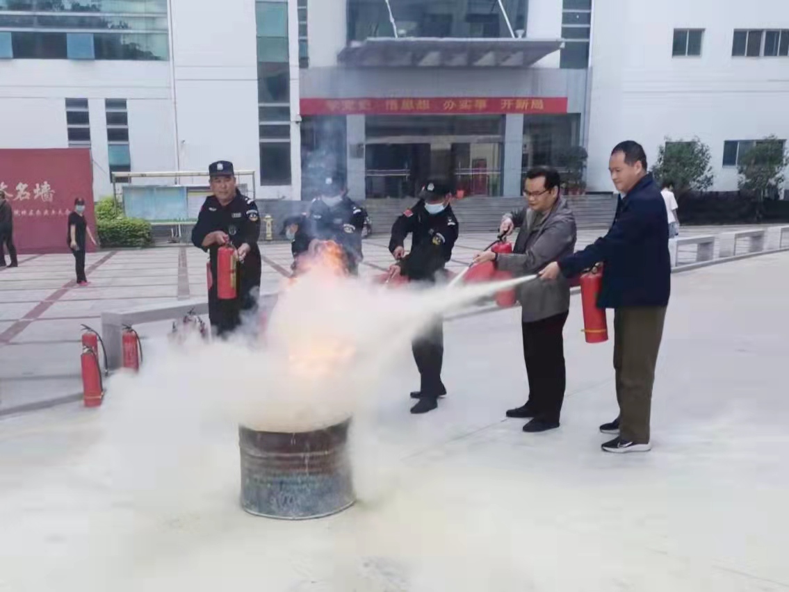 会后,校领导周勇军,保卫处处长吴永进与学校安保人员一同参与油盆灭火演练。
