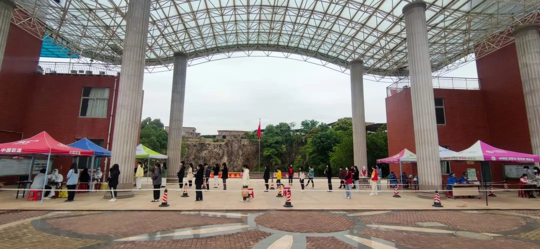 核酸检测现场秩序井然,快速高效。广大师生自觉佩戴口罩,间隔一米排队,通过体温检测、信息采集,十人一组便捷地完成核酸采样,并有序离开采样区,最大程度的做到了避免人员聚集和有效分流。