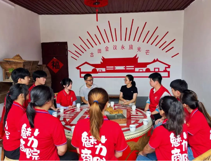 寻迹历史,与国旗同框,用爱国热情,谱写初心使命。“商小宝”宣讲团社会实践队与古田镇政府、才溪镇政府干部开展党史交流会,并在他们的带领下前往参观古田会议会址、古田纪念馆、毛主席纪念园、毛泽东才溪乡调查纪念馆等红色教育基地开展社会实践活动。
