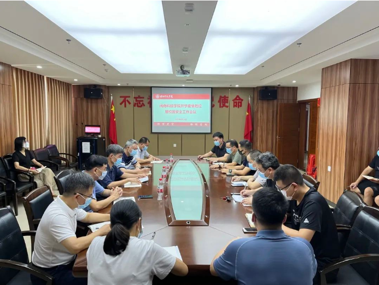 实地检查结束后,我校立即召开工作部署会,传达了疫情防控、校园安全、开学准备有关文件内容和要求。随后,各相关部门做了工作汇报,党委副书记林树生、副校长邱永渠分别结合分管工作提出要求。
