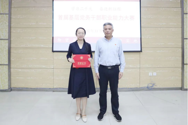 校党委书记李旭在总结讲话中指出,本次大赛组织有序、环节紧凑、选题科学,为党务干部提供了一个切磋技能、交流经验、提升本领、展现风采的平台。他强调,党务干部是基层党建工作的中坚力量,是落实“党的一切工作到支部”的重要保障。党务干部职业能力大赛是学校加强党务干部队伍建设的有益尝试,是打造我校高素质党务干部队伍、不断推动基层党建工作迈上新台阶的重要举措,党务干部要注重党的创新理论武装,业务工作经验积累,明确使命任务和岗位职责,不断提升履职能力、业务技能和工作水平。他勉励全体党务工作者要以党务干部职业能力大赛为契机,深入学习宣传贯彻党的二十大精神,自觉扛起基层党建工作的职责使命,攻坚克难、勇于创新、担当作为、真抓实干,持续推进基层党组织建设,为学校高质量发展提供坚强的政治保证、思想保证和组织保证。