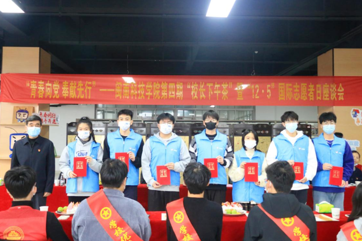 12月2日下午,校团委举办第四期“校长下午茶”暨“12.5”国际志愿者日座谈会,校长游小波、校党委副书记林树生,学生工作处、校团委班子及青年志愿者代表参加活动。